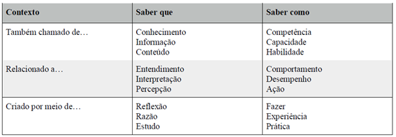 Quadro 2.2 – Distinção entre “saber que” e “saber como”