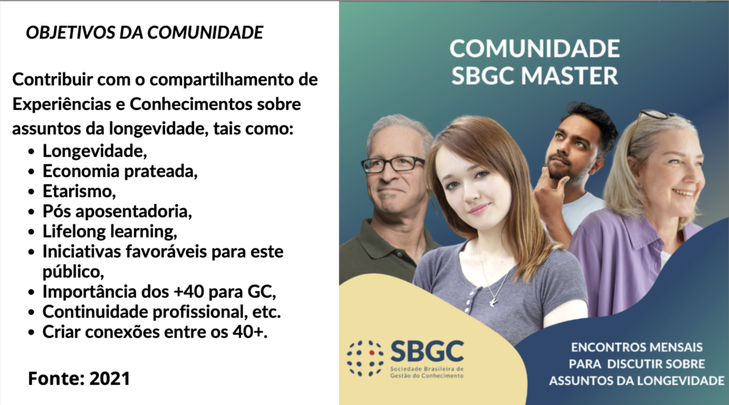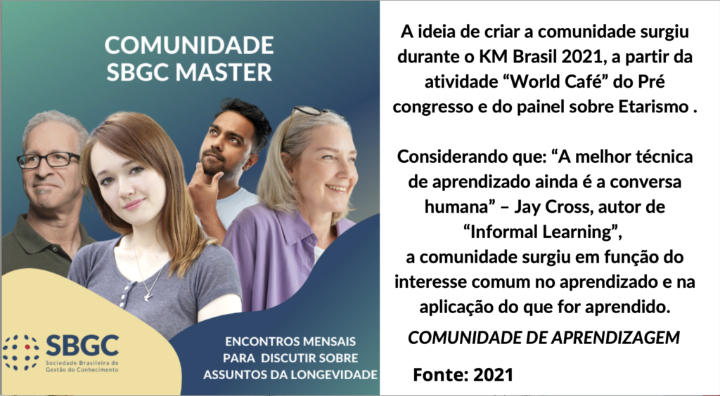 A ideia de criar a comunidade surgiu durante o KM Brasil 2021, a partir da atividade “World Café” do Pré congresso e do painel sobre Etarismo. Considerando que:
