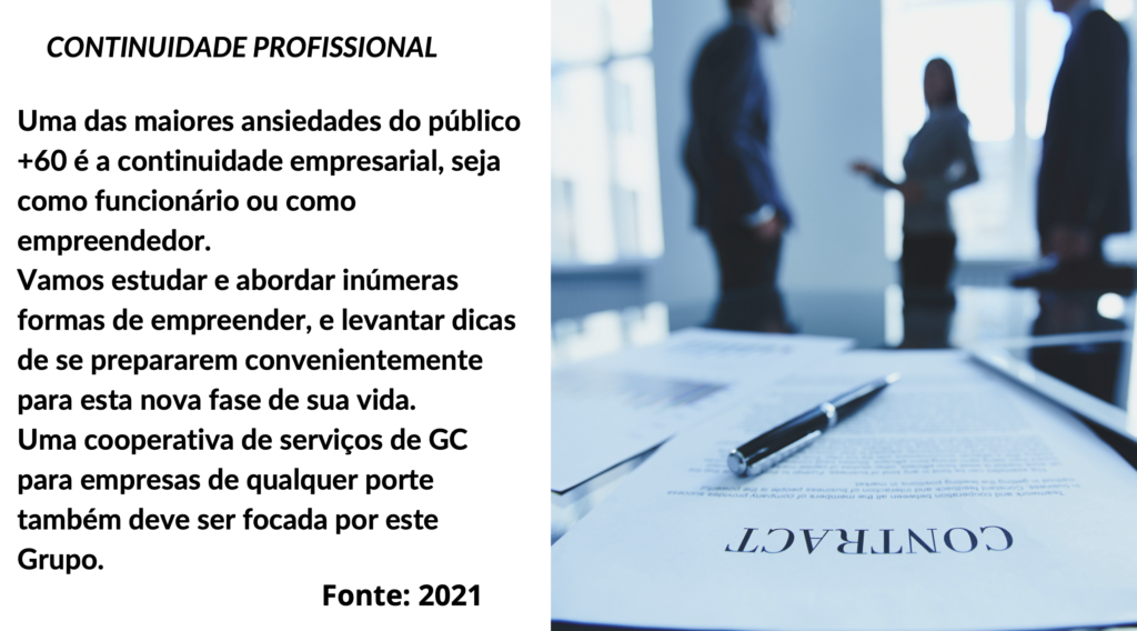 Uma das maiores ansiedades do público +60 é a continuidade empresarial, seja como funcionário ou como empreendedor.